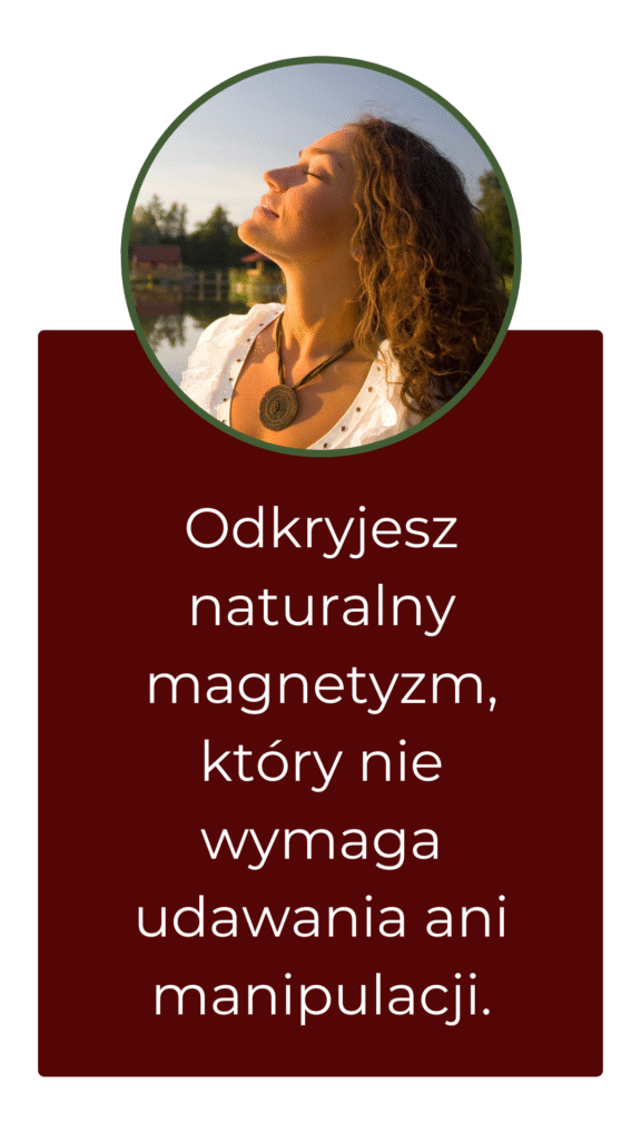 Odkryjesz przestrzeń, gdzie test magnetyzmu prowadzi Cię do ciała, medytacje otwierają serce bez walki, praktyki przyciągania budują relacje naturalnie, a live’y utrzymują Twoją moc na co dzień.