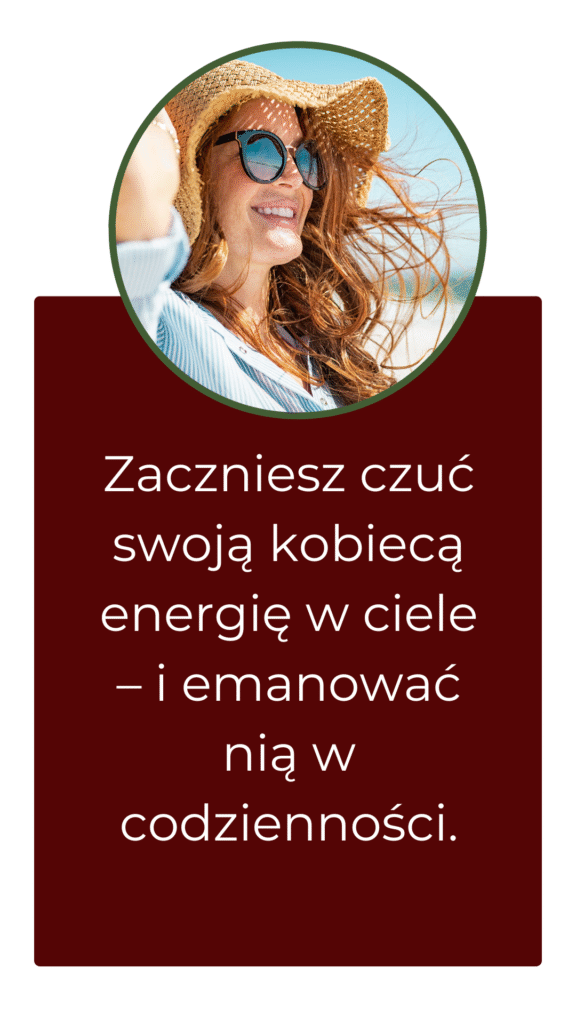 – Esencja kobiecego magnetyzmu: jak w 5 minut dziennie obudzić swoją kobiecą energię. – Tajemnice uwodzenia bez słów – praktyki energetyczne, które sprawiają, że mężczyzna zaczyna o Tobie myśleć. – Praca z ciałem, głosem i postawą – abyś stała się źródłem ognia w relacji na lata. – Ćwiczenia przebudzające pewność siebie i energię seksualną.